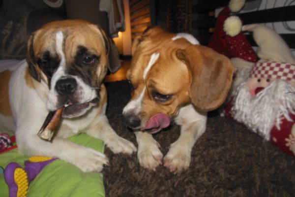Here is the kissing ball mix Heidi (bulldog-pug-beagle-mix), with a resting heart rate below 10. Together with our Luna, she is inseparable and with every fiber a true master of mindfulness.